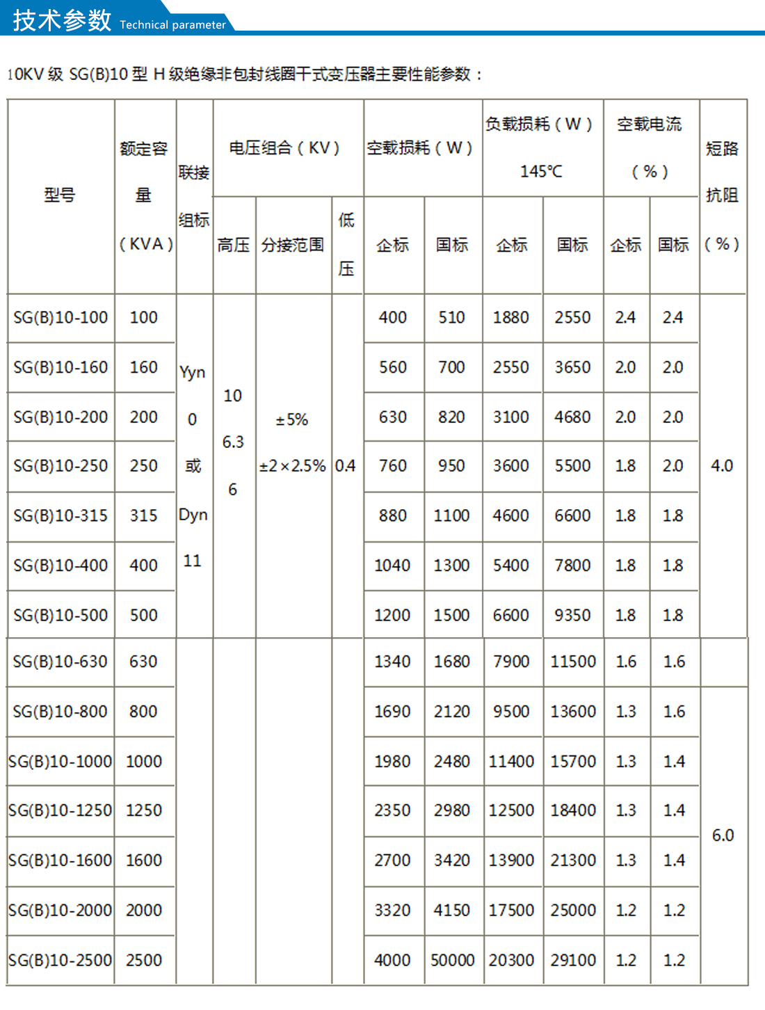 【額定容量】:30-2500kva      【額定電壓】:10kv