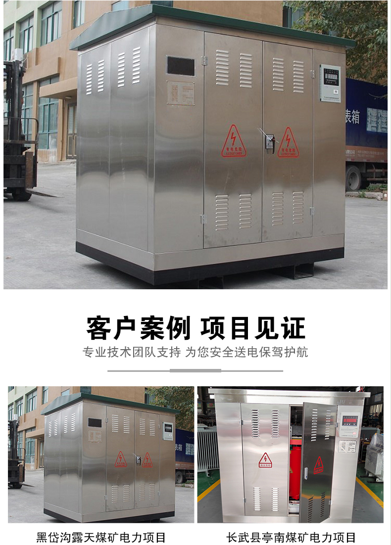KSG系列礦用隔爆型干式變壓器(以下簡單稱變壓器)適用于煤礦井下有沼氣煤塵的爆炸危險場所。在交流50Hz/電壓至660V的供電線 路中為煤電鉆、照明、信號等設備提供1140V、660V、380V、220V、127V、36V等電源。KSG變壓器按GB3836.1-83《爆炸性環境用防爆電氣設備通用要求》 GB3836.2-83《爆炸性環境防爆電氣設備隔爆型電氣設備“d”》等有關標準設計。制造與檢驗。英施丹礦用變壓器廣泛用于中國煤炭行業、銅礦、鐵礦、鋁礦、金礦、鈾礦、磷礦、隧道施工、冶金、中石油、中石化、加油站、電力、醫藥制造業、鐵路、船舶、場館、部隊、建筑、航空航天、公安消防及大型工礦等企業。